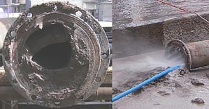 Метод основан на подаче воды под давлением от 250 до 2000 бар при помощи специальных насадок. Струя ламинарного потока воды разрушает цемент или бетон и вымывает его из трубы. Гидродинамика позволяет эффективно удалить не только бетонные отложения, но и корни деревьев, строительный мусор, затвердевший жир, нефтяной кокс, отложения кальция, очистить борта судна и причалов. Данный метод максимально щадящий для труб, но требует умения работать с оборудованием.